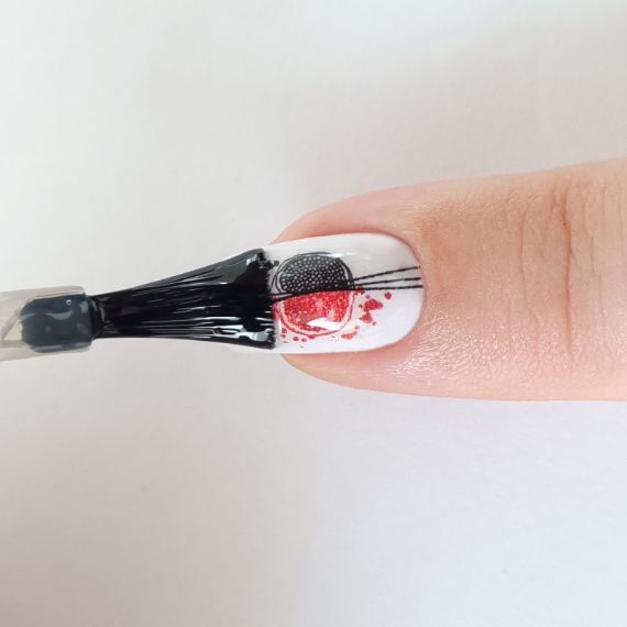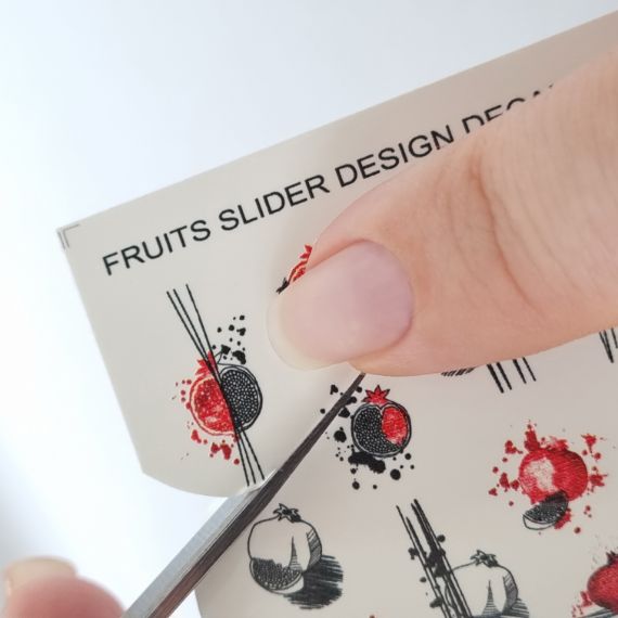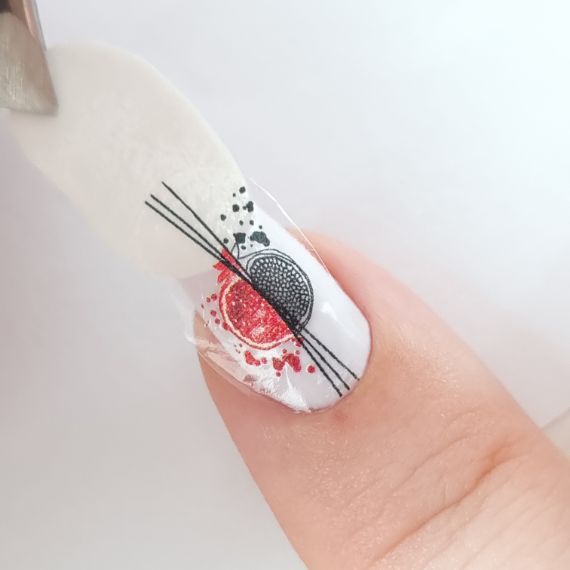 Перенесите изображение с бумажного носителя на поверхность ногтя клеевой стороной вниз (методом сдвига).